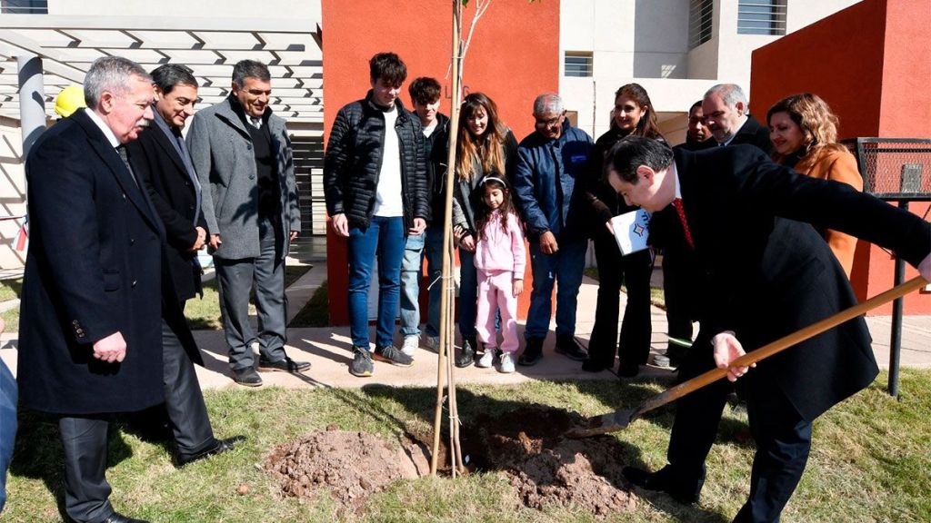 Antes del corte de cintas y en el marco de la campaña de arbolado que lleva a cabo la provincia con la comuna capitalina, el gobernador plantó un lapacho junto con Ángela Sánchez Ocampo y sus hijos, la familia en cuya vivienda se hizo la ceremonia inaugural y el recorrido por la unidad habitacional que cuenta con todos los servicios básicos, como cloaca, gas natural y red eléctrica.