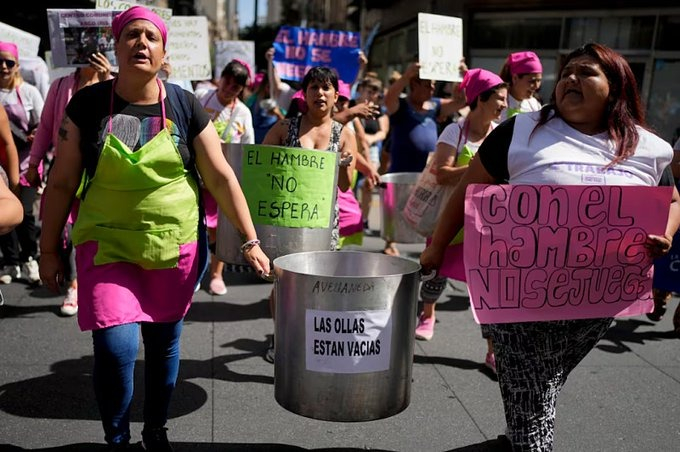 Las organizaciones del espacio "Territorios en Lucha" denuncian que "La Peor Violencia es el Hambre" y reivindican el esfuerzo de quienes mantienen comedores, merenderos y ollas populares en todo el país. Las organizaciones que forman parte de este espacio incluyen FeNaT-CTAA, Libres del Sur, Movimiento Argentina Rebelde MAR, Frente Popular Darío Santillán, FOL, MULCS, Movimiento 8 de Abril, FAR y COPA en Marabunta, FOB Autónoma, OLP Resisitir y Luchar, Movimiento Juana Azurduy, Arriba Lxs Que Luchan, MST Teresa Vive, MTD Aníbal Verón, MRP, FOB y MTR Por la Democracia Directa.