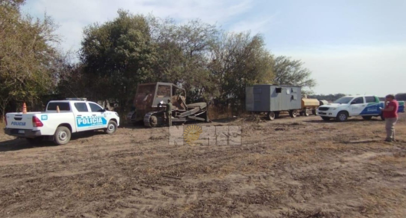 En el predio, personal de Bosques junto a la Policía Rural logro detener una topadora marca Caterpillar modelo 07, anexada con pala de 4 metros de ancho y pluma, además de una casilla rodante y un tanque cisterna perteneciente a una empresa de la ciudad de Sáenz Peña, Chaco, según indicó la fuente de Bosques.Se determinó el área afectada en 30 hectáreas de monte derribados en forma ilegal.