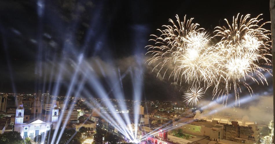 Una verdadera multitud disfrutó del imponente espectáculo artístico y de fuegos artificiales desde la plaza Libertad y sus alrededores.