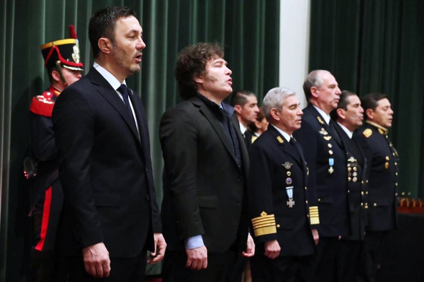 También en su discurso, Milei incluyó guiños a su retórica partidista. "Como decía el general San Martín, alguien que la había visto, se necesita un Ejército de leones", señaló. Al final, terminó pidiendo disculpas para cerrar con su característico: "Viva La Libertad, Carajo". El mandatario corrigió y gritó un más ecuménico "Viva la Patria,Carajo". La oficialidad en el segundo caso sí se sumó a los vítores.