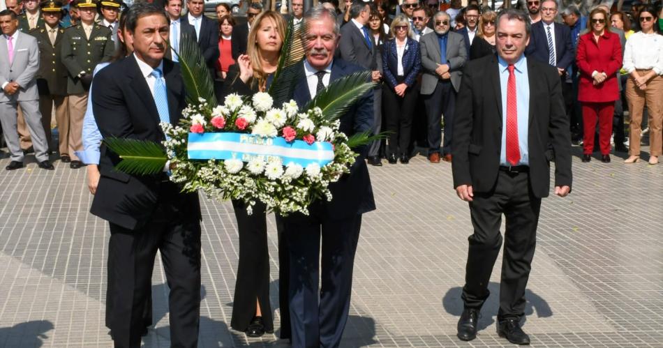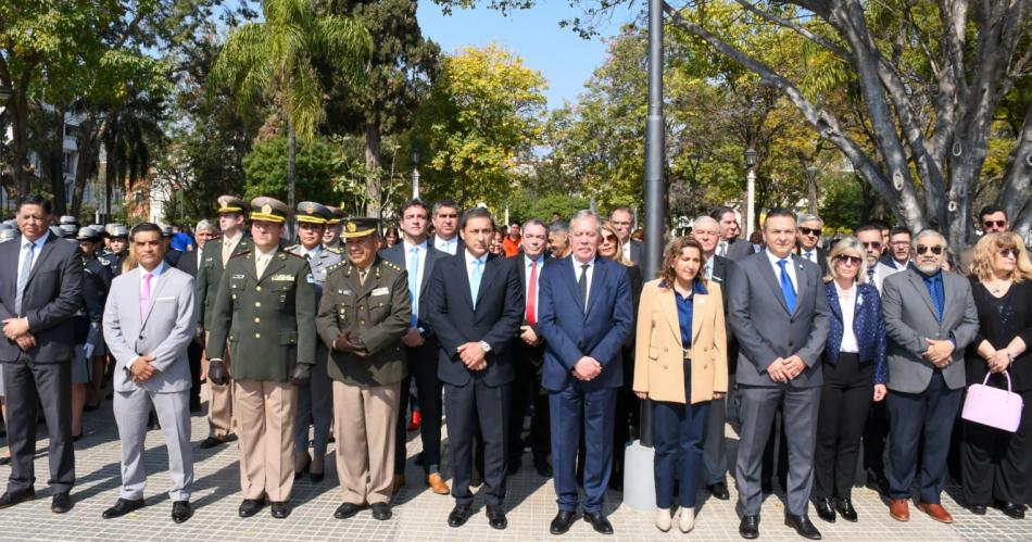 La ceremonia se desarrolló en la Plaza San Martín, frente a Casa de Gobierno, donde también estuvieron los ministros de Educación, Mariela Nassif; de Justicia, Matilde O'Mill, y de Desarrollo Social, Ángel Niccolai. Además de la intendente de la Capital, Norma Fuentes, miembros del gabinete municipal, legisladores, autoridades de las fuerzas policiales y del Ejército.
