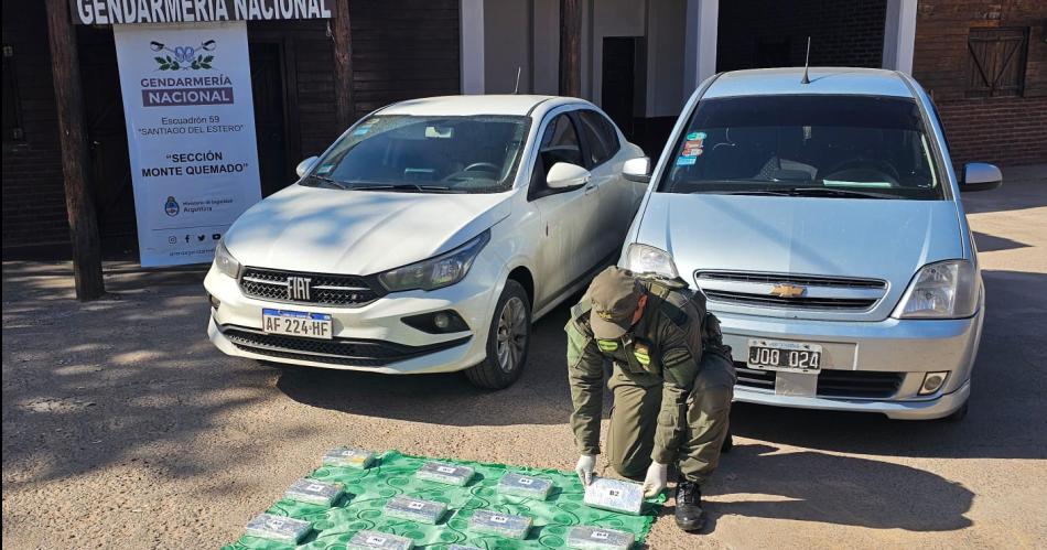En la requisa del vehículo descubrieron que los paneles laterales de las puertas del segundo automóvil habían sido removidos, donde habían ocultado 13 paquetes con droga, cubiertos con mantas.
