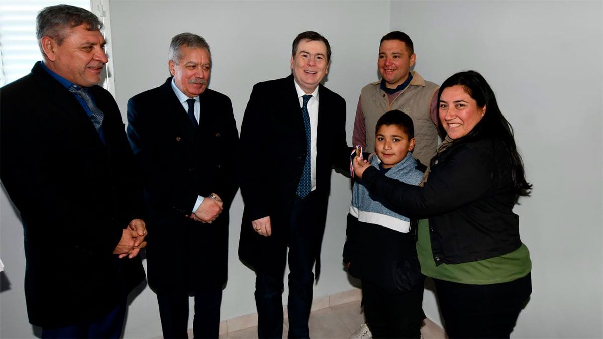 En el nuevo hogar de María Ferreyra y Julio Maldonado se hizo el corte de cintas mediante el cual se dejó inaugurado el complejo compuesto por 61 viviendas, de las cuales 36 fueron entregadas en esta ocasión y otras 25 serán otorgadas en los próximos días.