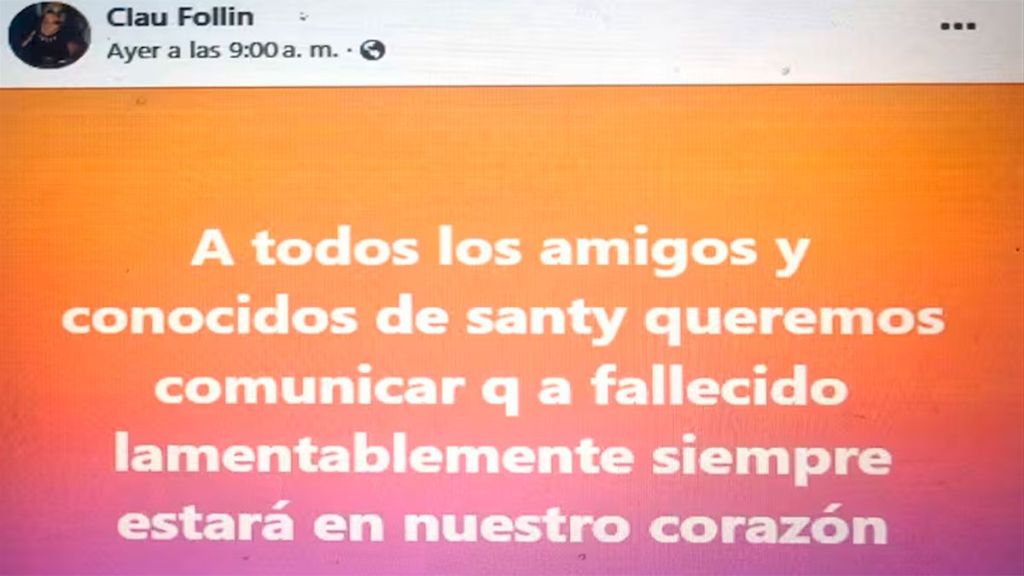 Claudia Follin, la madre de Santiago, contó en sus redes: “A todos los amigos y conocidos de Santy queremos comunicar que ha fallecido lamentablemente. Siempre estará en nuestro corazón”. Hace una semana había advertido que su estado era “complicado”, ya que tenía comprometido “el sistema respiratorio, la parte pélvica genital”. Estaba con asistencia respiratoria, en una cámara de oxígeno.