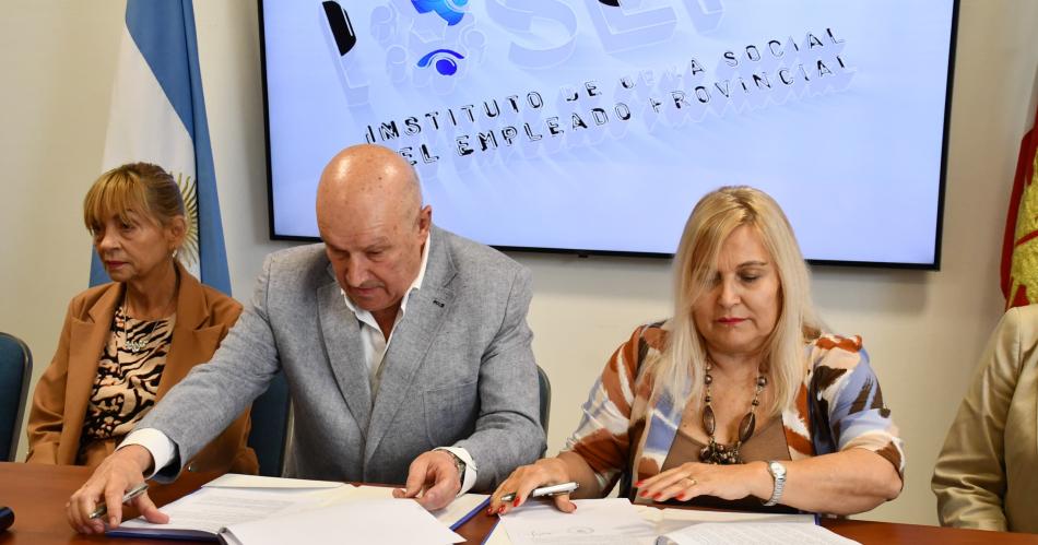 El presidente del Instituto de Obra Social del Empleado Público, Raúl Ayuch, y la directora ejecutiva del Centro Provincial de Salud (Cepsi), Liliana Romero, firmaron un convenio para optimizar las prestaciones médicas y establecer mecanismos que garanticen el no pago de plus o adicionales.