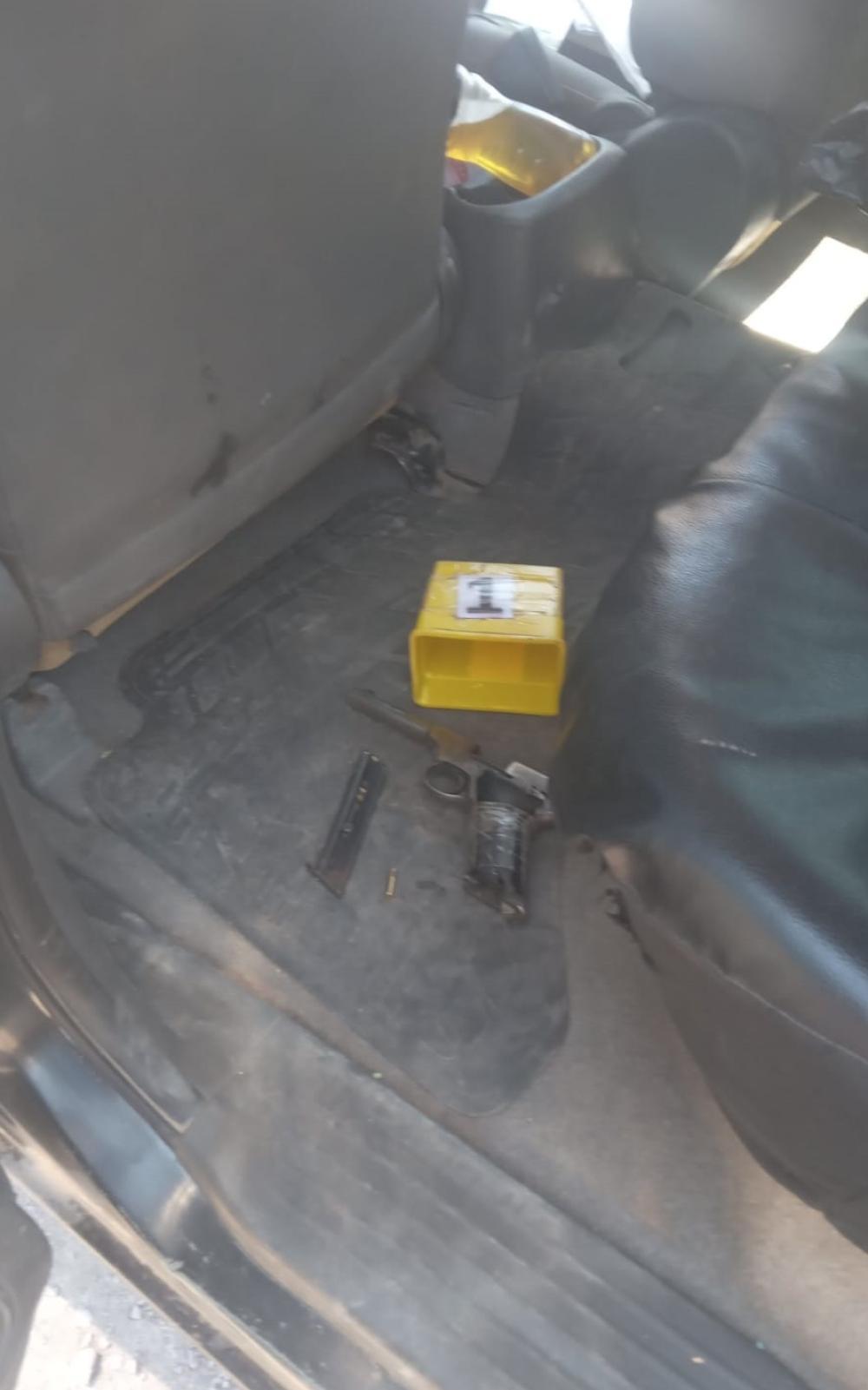 El personal de la División Criminalística y sus pares de la Dirección General de Drogas Peligrosas hallaron también dos envoltorios con una sustancia polvorienta, la cual realizada la prueba de campo resultó ser cocaína. Además, se secuestraron un arma de fuego calibre 22 y teléfonos celulares.