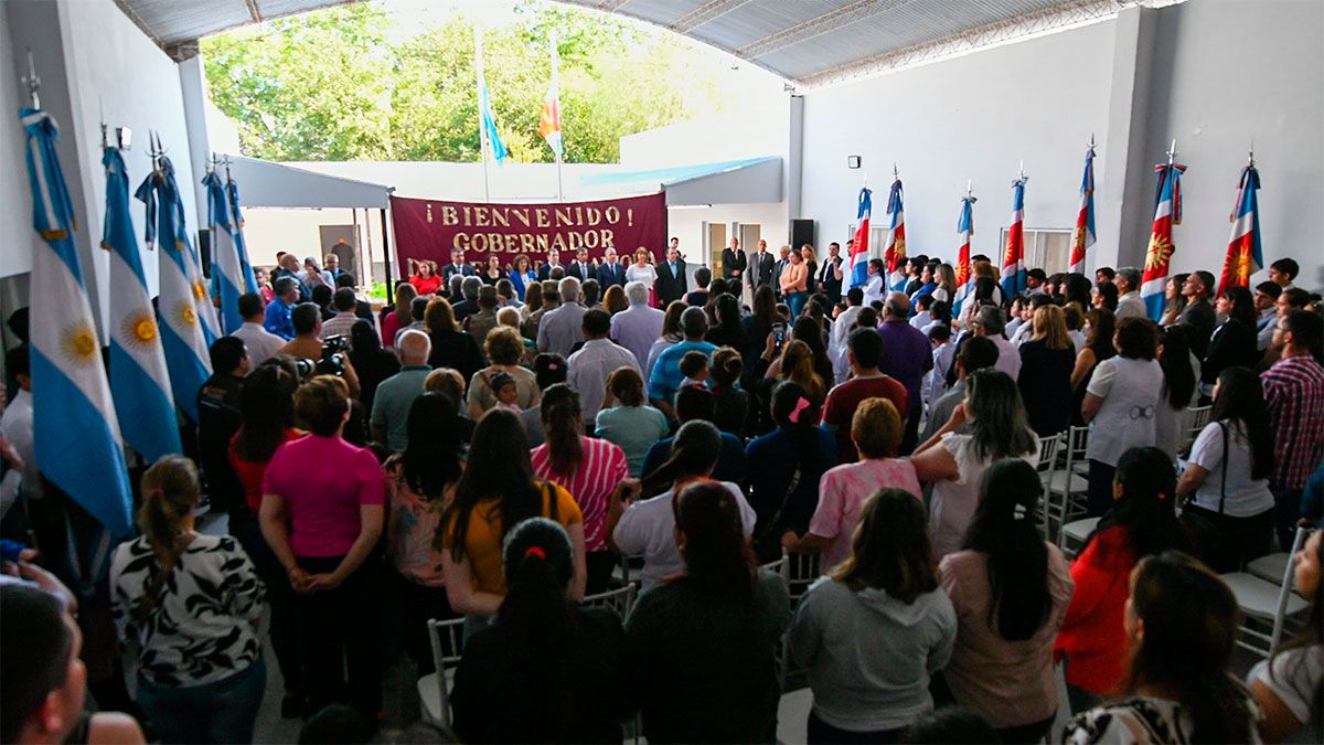 “Estoy muy feliz de estar aquí donde estamos dejando inaugurado el flamante edificio escolar, donde ya habíamos construido el jardín de infantes, y lo cierto es que es parte de la inversión educativa, realizada a pesar de la complejidad de la situación económica que nos viene generando bastantes restricciones, sobre todo en este último año”, dijo, al recordar que este año la ejecución presupuestaria destinada a educación será cercana al 40%, igual que en los últimos años, y superando en un 10% a lo establecido por la Constitución.