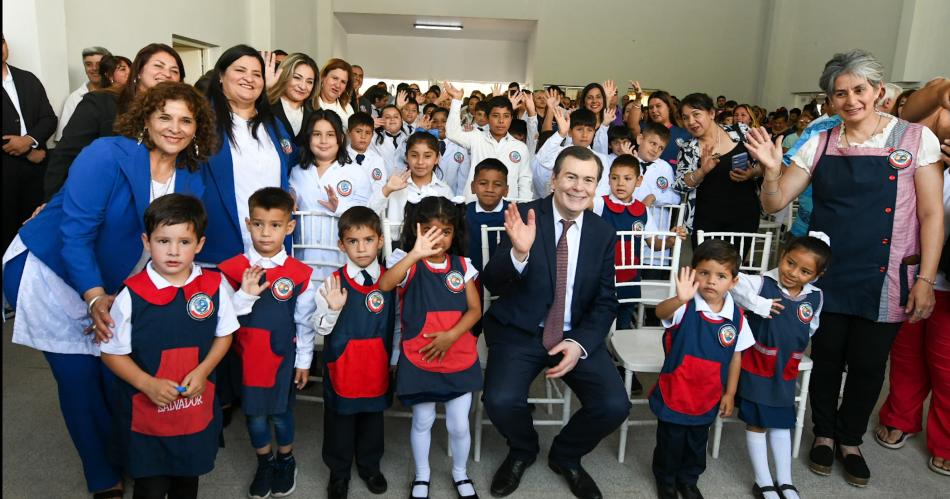 "Estoy muy feliz de estar aquí donde estamos dejando inaugurado el flamante edificio escolar, donde ya habíamos construido el jardín de infantes, y lo cierto es que es parte de la inversión educativa, realizada a pesar de la complejidad de la situación económica que nos viene generando bastantes restricciones, sobre todo en este último año", dijo. Pese a ello, rescató que este año la ejecución presupuestaria destinada a educación será cercana al 40%, igual que en los últimos años, y superando en un 10% a lo establecido por la Constitución.