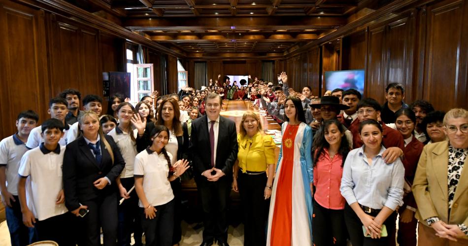 El gobernador Gerardo Zamora recibió este martes en Casa de Gobierno la visita de 50 alumnos de la Escuela Técnica N° 13 "Prof. Julio Olivera" de la localidad de Estación Simbolar y 14 chicos de la Escuela Secundaria N° 8 "General Antonio Taboada" de Clodomira, ambos establecimientos ubicados en el departamento Banda, en lo que fue el cierre anual del programa "Conociendo mi provincia".