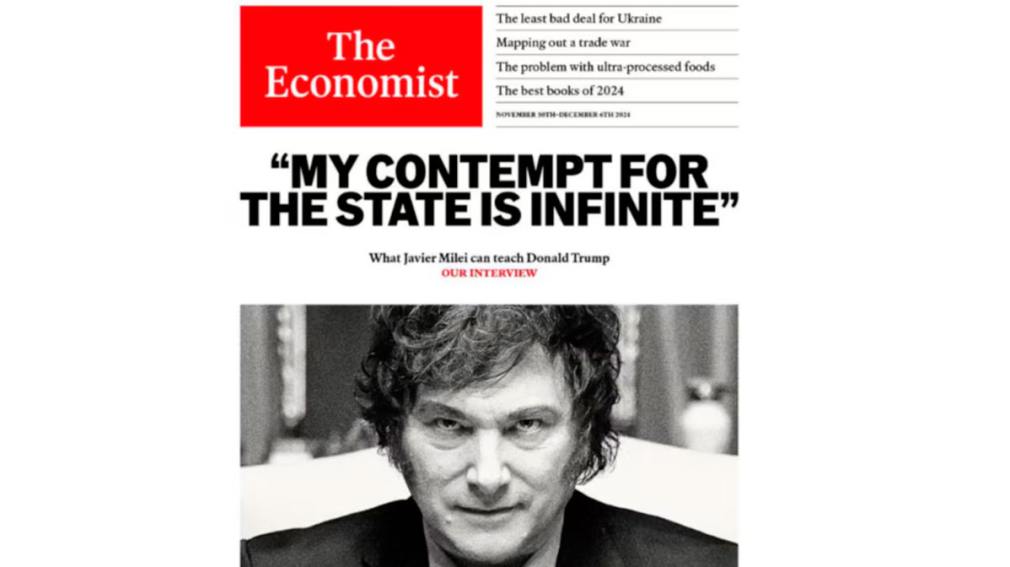 La edición global de The Economist que estará disponible el 30 de noviembre tiene en su portada al presidente Javier Milei. Con críticas positivas y negativas, el mandatario captó la atención de la prensa internacional. En el título de la tapa, el textual de Milei es contundente: “Mi desprecio por el Estado es infinito”.