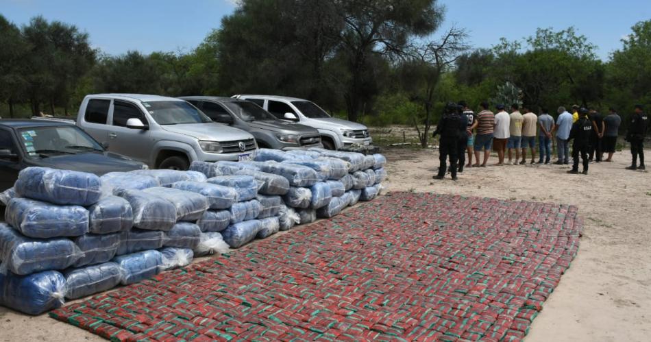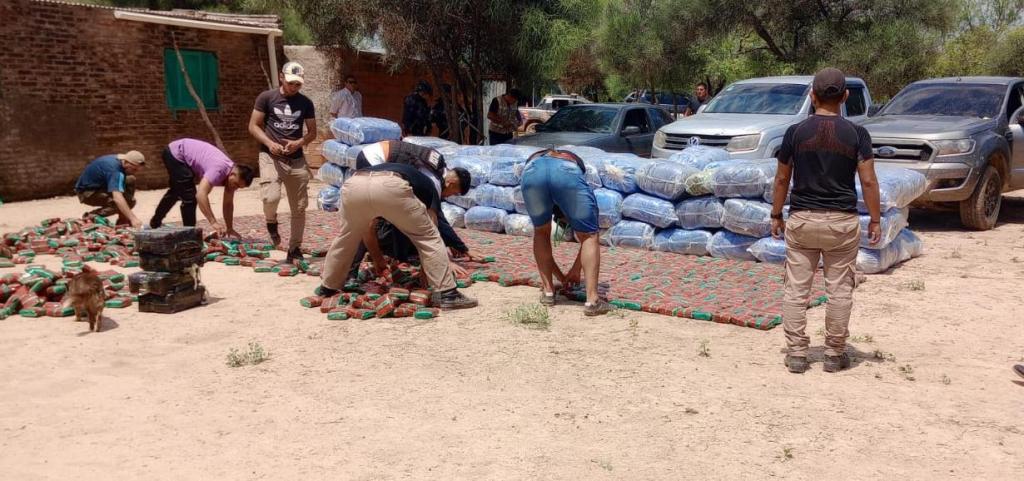 A media mañana, la decena de porteños fue descubierta en una casa abandonada en el paraje El Once. Llevaban el fuerte del botín: 2,5 toneladas de hojas de coca.
