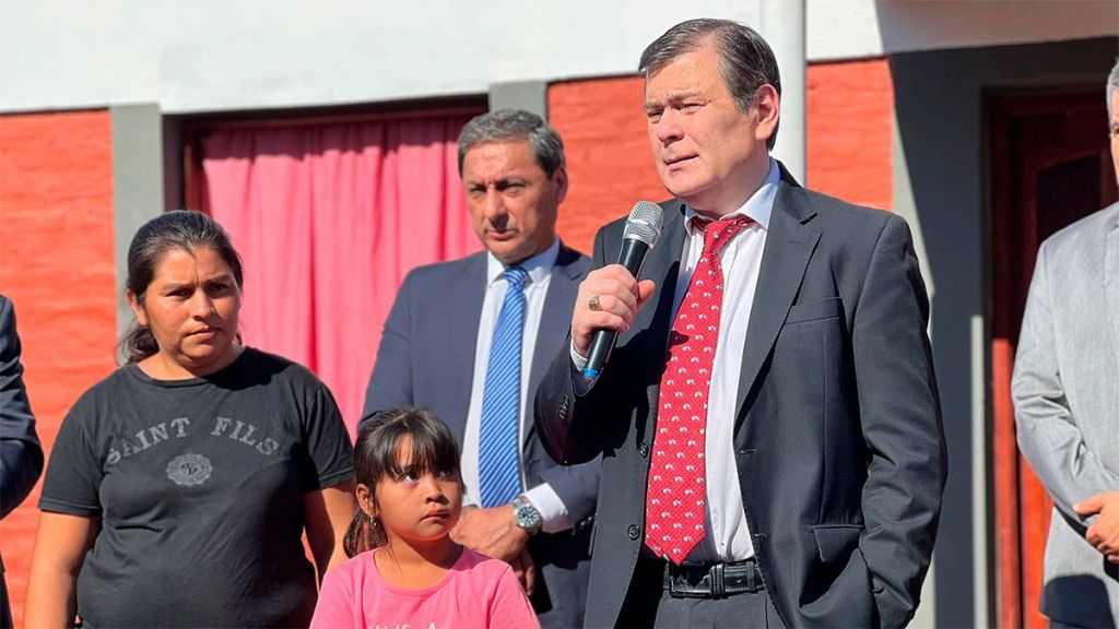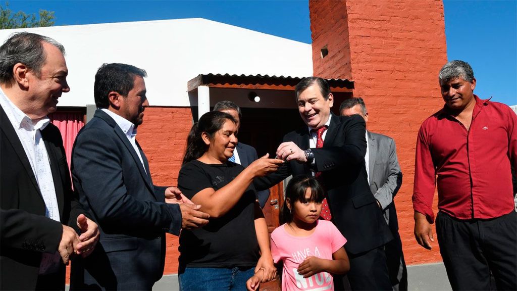 La visita del mandatario a este lugar comenzó por el domicilio de Karina Rodríguez, donde se hizo el corte de cintas y la entrega simbólica de llaves a las 18 familias beneficiarias del programa Viviendas Sociales, las que fueron construidas con la colaboración de las comisiones municipales de Villa Salavina, Sabagasta y Vaca Human.