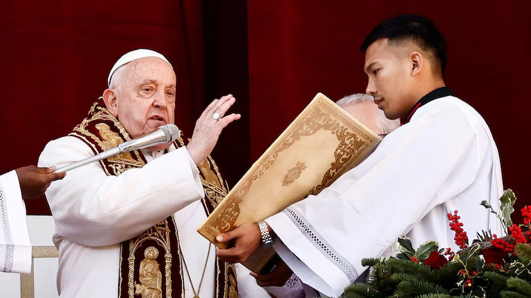 Francisco, de 88 años, que celebra la duodécima Navidad de su pontificado, pidió el fin de los conflictos, políticos, sociales o militares, en lugares como Líbano, Mali, Mozambique, Haití, Venezuela y Nicaragua.