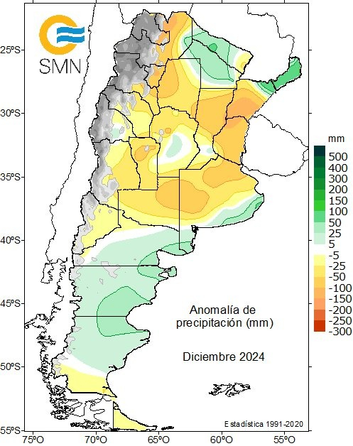 Según el resumen de diciembre de 2024 del Servicio Meteorológico Nacional (SMN), el último mes presentó una anomalía de temperatura de -0,7°C, resultado de un inicio inusualmente frío.