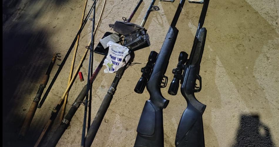 Según se supo, allí encontraron dos rifles de aire comprimido, una navaja, un reflector led, siete cañas de pescar, un teléfono celular de alta gama, documentación del vehículo y dos cajas de vino.