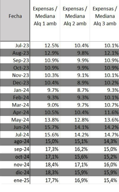 Tiempo de lectura: 1 minuto, 57 segundos18 de Enero, 2025-No es solo el alquiler-En enero representaron un 16,7% promedio del valor de los alquileres. Casi duplicaron el número de enero de 2024, cuando representaban 9% promedio.