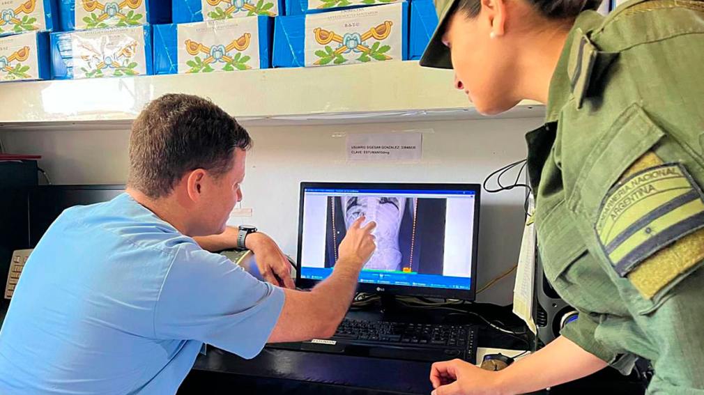 Ante la posibilidad de estar frente a un hecho ilícito, los funcionarios junto con profesionales del Servicio de Emergencia 107 trasladaron a los hombres hasta el nosocomio local, donde les realizaron placas radiográficas, mediante las cuales pudieron observar la presencia de cuerpos extraños en la zona del abdomen.