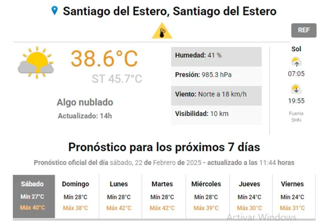 Tiempo de lectura: 53 segundosHoy 15:48-Para la noche, se espera que la temperatura descienda a 34°C, aunque con altos niveles de humedad que continuarán dificultando el descanso de los santiagueños.