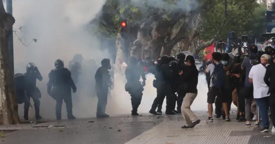 La Policía Federal contestó con balas de goma y gases lacrimógenos a las piedras y protestas sobre la calle Hipólito Yrigoyen y los hicieron retroceder por la avenida Entre Ríos.