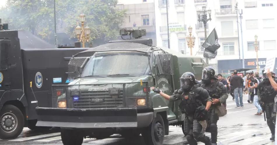 Mientras tanto, Gendarmería avanzó con un camión hidrante para disipar a manifestantes y cerca de las 17 de este miércoles la marcha -que había comenzado de manera pacífica con el apoyo a los jubilados, como cada miércoles- ya había sido disipada.