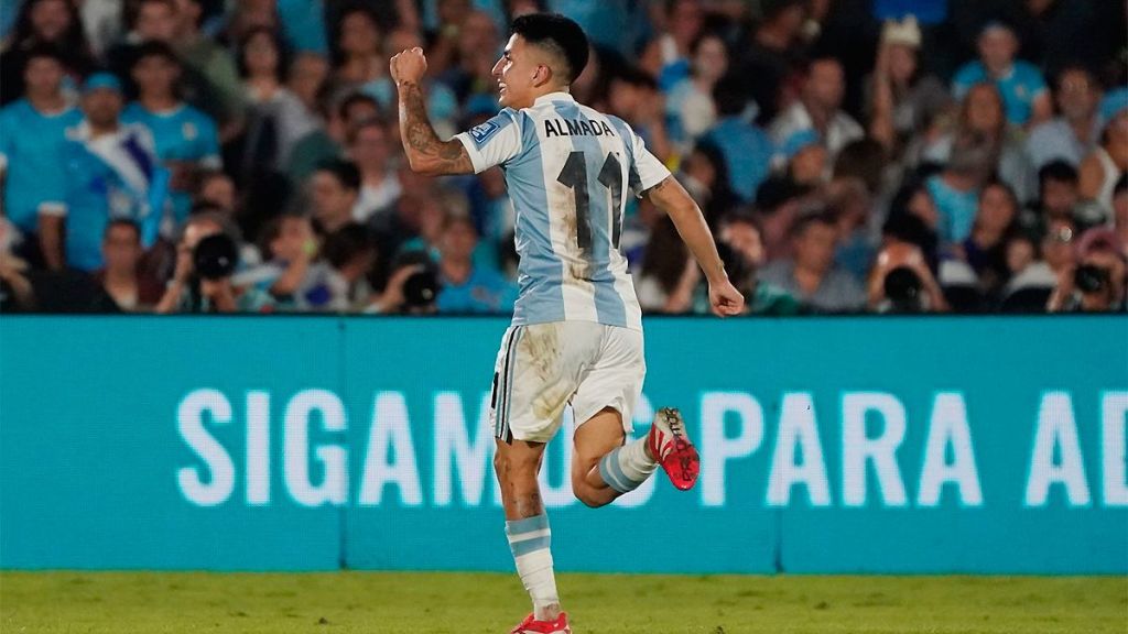 Sin embargo, a los 22 minutos del segundo tiempo, Julián Álvarez habilitó por izquierda a un solitario Almada, quien definió con un remate espectacular desde fuera del área al ángulo izquierdo de Rochet, desatando el festejo argentino.