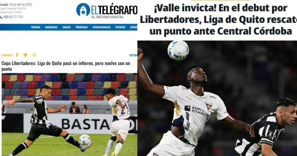 Los diarios y medios periodísticos de Ecuador hablaron de lo que fue el debut de la Liga de Quito en la Copa Libertadores ante Central Córdoba. El empate 0-0 no reflejó lo que sucedió en el campo de juego, donde el elenco santiagueño fue superior y convirtió en figura al arquero Gonzalo Valle.