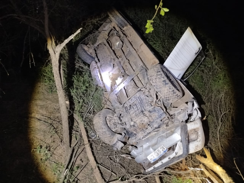Uno de los vehículos perdió el control en una zona de bajo conocida como Río Muerto, volcando y desplazándose unos 40 metros dentro del monte. Del interior del rodado salieron dos personas: un hombre y una mujer, quien presentaba lesiones graves, presuntamente una fractura en una pierna.