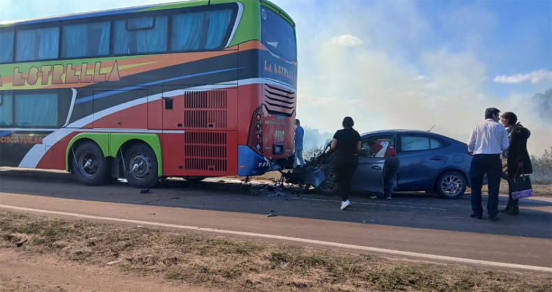 Una camioneta, un automóvil y un colectivo de línea colisionaron por causas hasta ahora desconocidas. Producto del impacto, el conductor del automóvil perdió la vida. En tanto, su único acompañante fue socorrido por los pasajeros del colectivo, quienes lo ayudaron a salir del vehículo.
