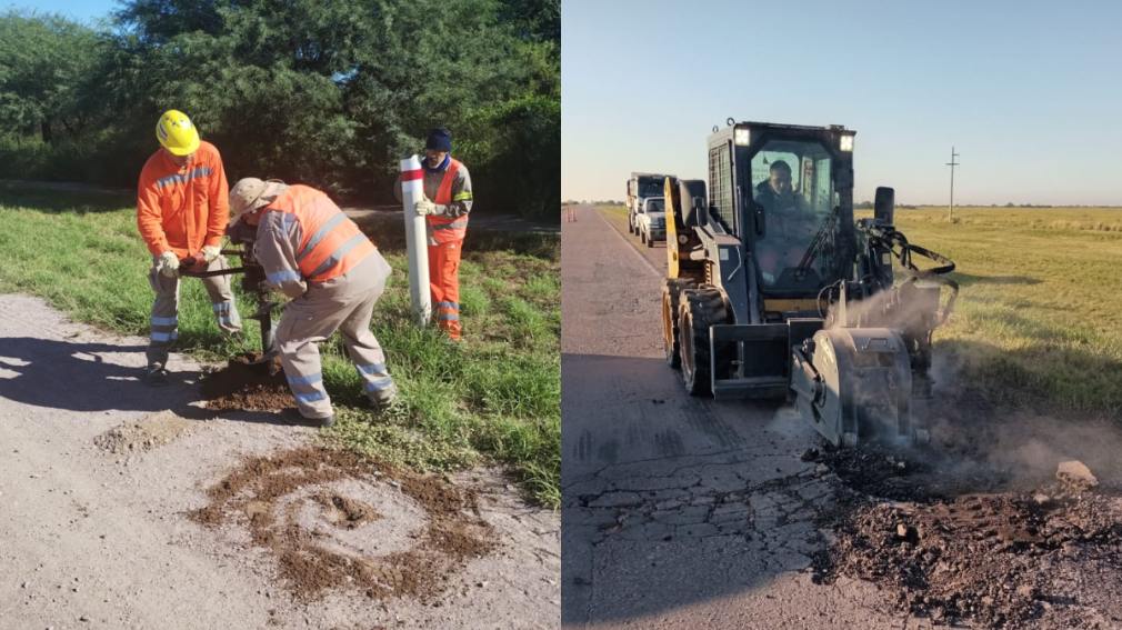 En este contexto, se ejecutaron bacheos preventivos con material frío sobre la Ruta Nacional 98 sur en el tramo Bandera- límite con Santa Fé. Asímismo, en el tramo Zanjón-Loreto, se realizan tareas de perfilado de banquinas, relleno con material petreo y corte de pasto manual y mecánico, limpieza de cunetas y alcantarillas.
