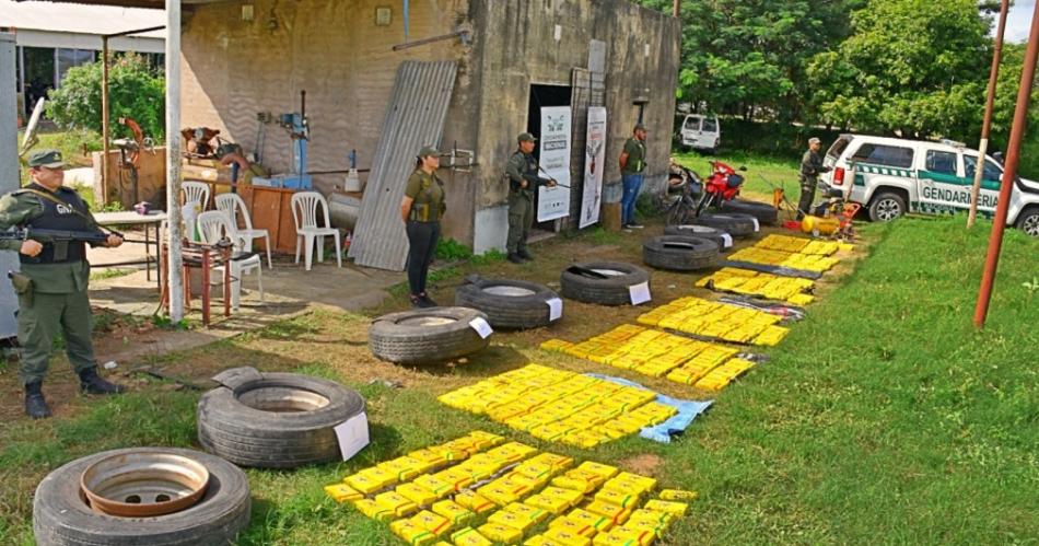 Una de las inspecciones tuvo lugar en una finca ubicada sobre la Ruta Nacional N° 34, de la localidad de General Mosconi. Allí, dentro de una gomería abandonada los gendarmes hallaron 400 paquetes rectangulares acondicionados dentro de siete cubiertas de camión. Las pruebas de Campo Narcotest realizadas por personal de Criminalística y Estudios Forenses confirmaron que se trataba de cocaína, con un peso total de 425 kilos 975 gramos.