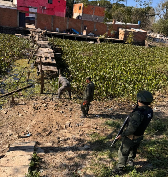 La acción fue llevada a cabo por integrantes de la Agrupación VI "Formosa", los Escuadrones 15 "Bajo Paraguay" y 16 "Clorinda", junto con la Sección de Investigaciones Antidrogas de Clorinda, en el contexto del operativo denominado "Desarme". Las estructuras derribadas eran precarias pasarelas de madera confeccionadas con pallets, construidas de forma ilegal para facilitar el contrabando y el cruce irregular de personas por pasos no habilitados.