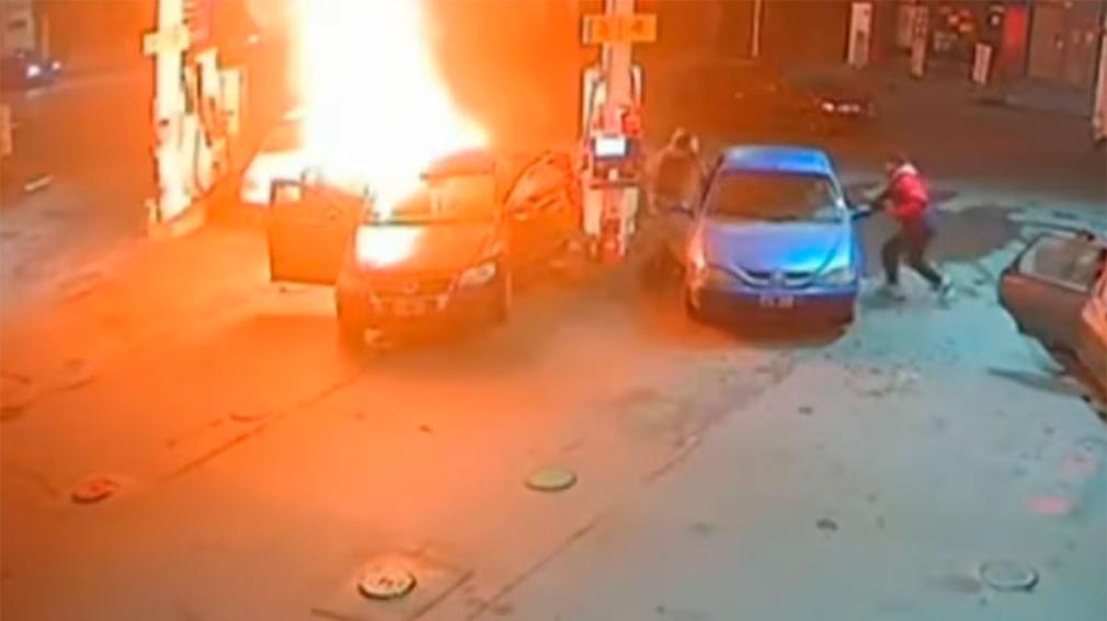Allí se ve cómo el vehículo en cuestión se prendió fuego en segundos, generando pánico en el resto de las personas que estaban cerca del surtidor.