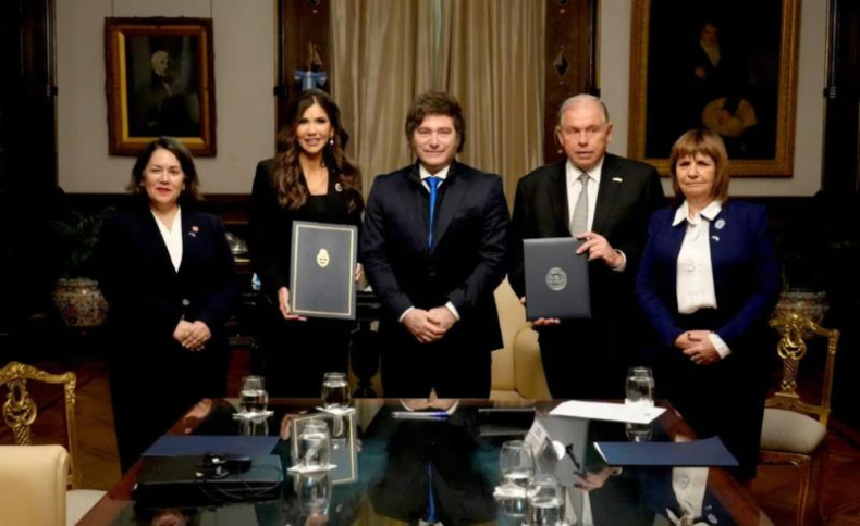 Ayer el presidente Javier Milei se reunió con la secretaria de Seguridad Nacional de Estados Unidos, Kristi Noem; ambos funcionarios firmaron un acuerdo y una declaración de intención para el ingreso de la Argentina al Programa de Exención de Visas.