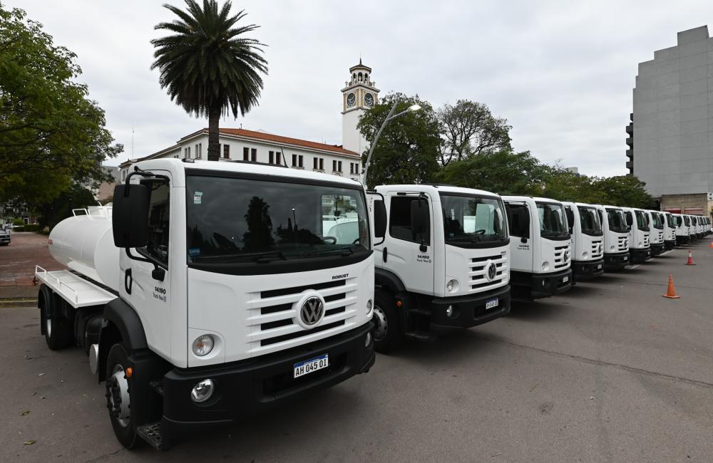 El gobernador Gerardo Zamora entregó 15 camiones tanque a la Administración Provincial de Recursos Hídricos. La entrega se llevó a cabo en la explanada de Casa de Gobierno, donde el titular del Poder Ejecutivo estuvo acompañado por el jefe de Gabinete, Elías Suárez; el ministro de Obras Públicas, Aldo Hid; el secretario de Obras Públicas, Jorge Zuaín; el subsecretario de Agua, Sergio Zaltz y el presidente de Recursos Hídricos, Alfredo Montero.