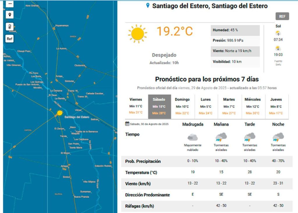Tras varias jornadas con condiciones primaverales, el Servicio Meteorológico Nacional anticipa un marcado cambio de tiempo para este fin de semana. Durante la jornada del sábado se esperan tormentas aisladas, vientos del sureste rotando al sur con ráfagas de hasta 50 km/h y un descenso de la temperatura, con una máxima que rondará los 28 grados.