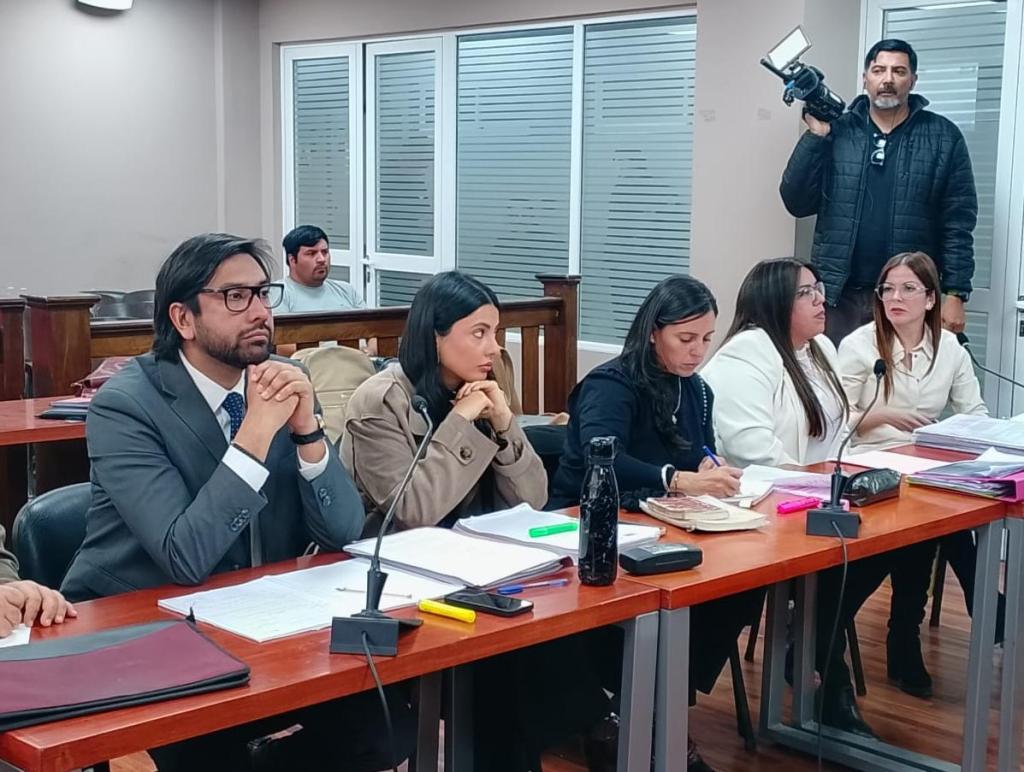 Enfrente, la defensa a cargo de Adolfo Suárez y Julio Llugdar, prefirieron la mesura dialéctica, basándose en la potestad de la Fiscalía "para la dinámica de la declaración de testigos". El equipo está conformado por las fiscales Natalia Saavedra y Ximena Jerez e instructora, Eugenia Pereyra.