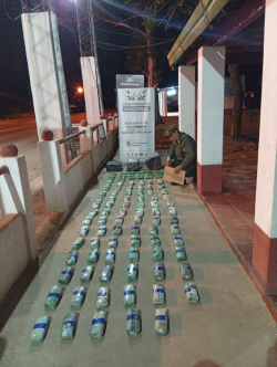 Asimismo, en horas de la madrugada del jueves, efectivos del Escuadrón 16 "Clorinda", secuestraron 24 kilos 360 gramos de hojas de coca en su estado natural. Estaban ocultos en encomiendas en un transporte de paquetería que provenía desde Buenos Aires y se dirigía hacia la localidad formoseña de Clorinda. Es el resultado de un control en el puesto fijo "Gendarme Fermín Rolón" sobre la Ruta Nacional Nº 11. Intervino la Fiscalía Federal Nº 2 de Formosa, quien dispuso el secuestro de los vegetales.