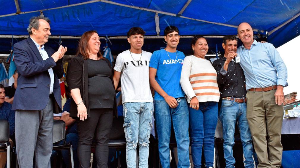 Junto con la comisionada municipal, Carina Genta, se realizó la entrega de las unidades habitacionales que fueron ejecutadas con fondos aportados por el Gobierno de la provincia. El corte de cintas se realizó en el domicilio de Gerardo Carasso, donde también recibieron las llaves y certificados las familias de Javier Uviedo, Enrique López y Mariela Oggero.