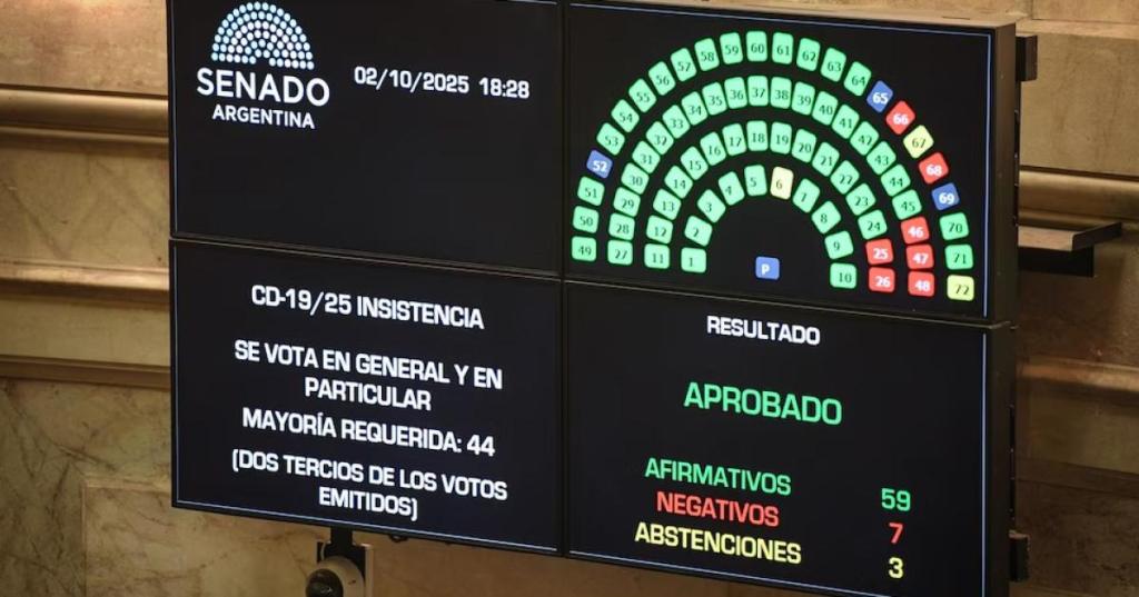 Tiempo de lectura: 2 minutos, 45 segundos02/10/2025-19:14 País-Las dos leyes fueron insistidas con dos tercios de los votos y recuperan vigor