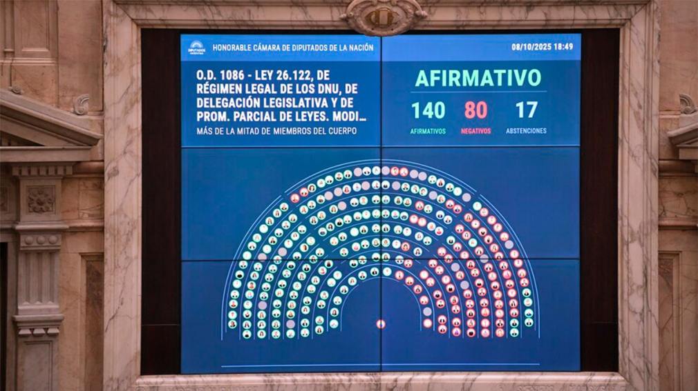 En un contexto político y económico complejo para el Gobierno, un amplio abanico opositor le propinó un nuevo golpe al oficialismo en la Cámara de la Diputados al convertir en ley la reforma de la ley que reglamenta el tratamiento legislativo de los decretos de necesidad y urgencia (DNU) y decretos delegados que dicta el Poder Ejecutivo.
