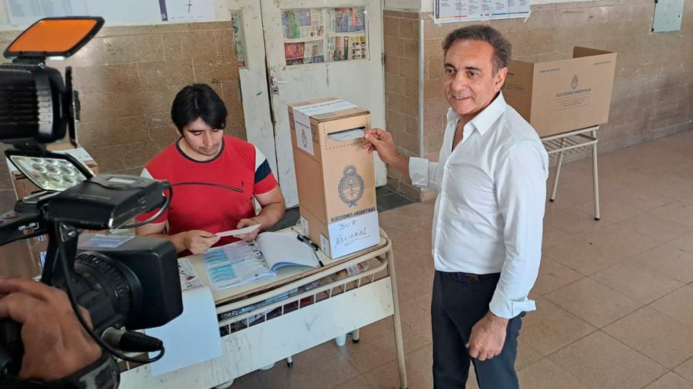 Minutos antes de las 10 de la mañana el candidato a senador por La Libertad Avanza Tomás Figueroa, emitió su voto en la Escuela Industrial.
