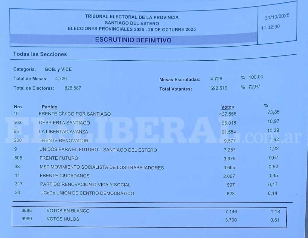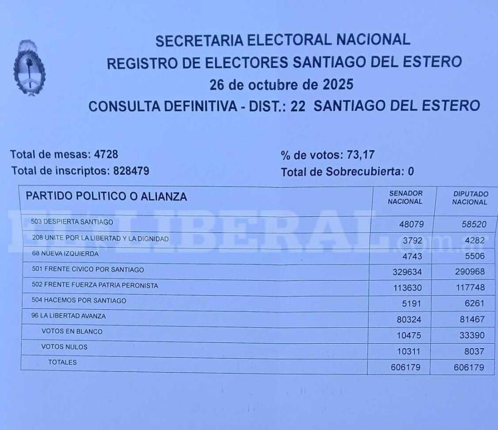 Con el cierre del escrutinio definitivo, se pone punto final al proceso electoral 2025 en Santiago del Estero, que reafirmó el liderazgo del Frente Cívico en la provincia.