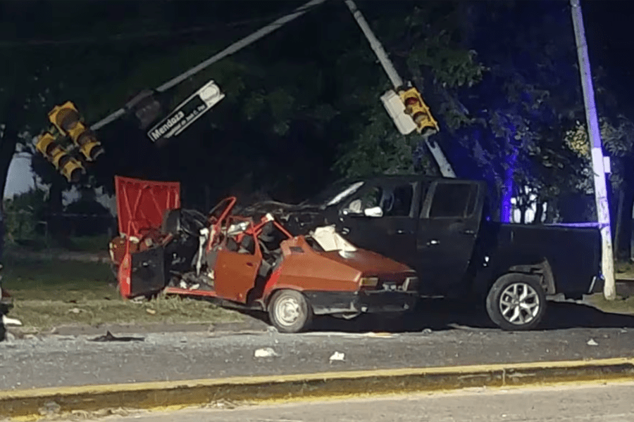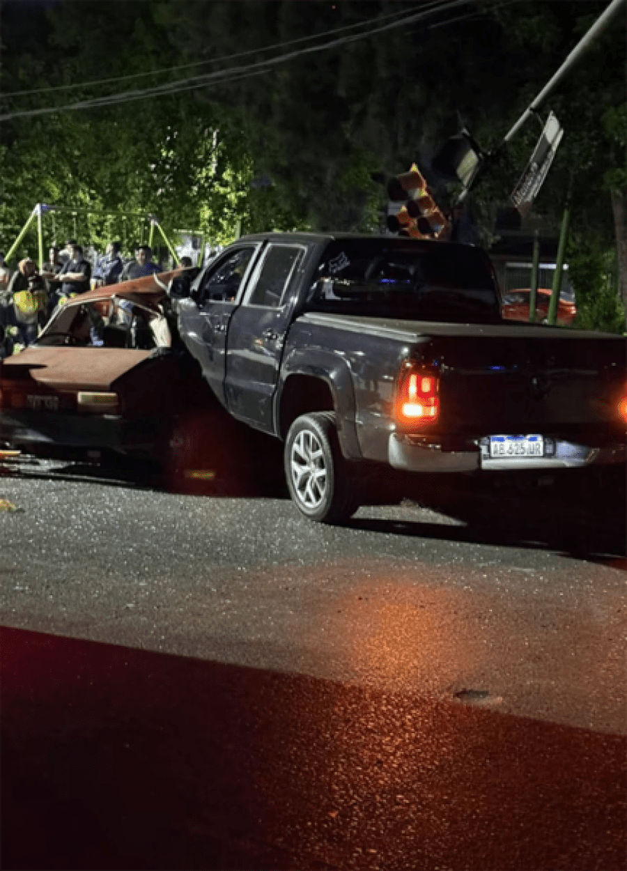 El accidente ocurrió el viernes por la noche, en la esquina de Ruta 197 y Mendoza. Una Volkswagen Amarok manejada por Michael Jean Carballo, de 23 años, chocó de lleno contra el auto familiar. Según las cámaras de seguridad, el Renault 12 cruzó el semáforo en rojo y la camioneta apareció a toda velocidad, impactando de lleno en el lateral.