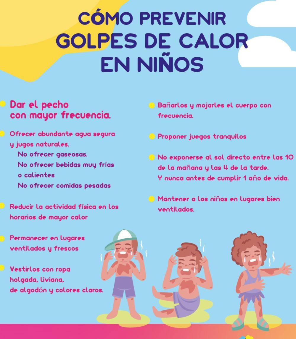 En ese sentido, sugirió a los adultos estar atentos, más que nunca, a los niños y "ofrecerles agua frecuentemente, aunque no la pidan. En el caso de los bebés, darle pecho a demanda. Hay que evitar sol entre 10 y 17 horas; y buscar sombra y ventilación".