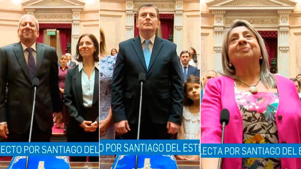 En el caso de Santiago del Estero, la lista del Frente Cívico —encabezada por el gobernador Gerardo Zamora— se impuso en las urnas y aseguró dos de las tres bancas en disputa. Durante la ceremonia, Zamora juró su cargo en la Cámara Alta acompañado por toda su familia. Antes, prestó juraramento la actual diputada provincial Esther del Carmen Moreno, quien asumió por primera vez.