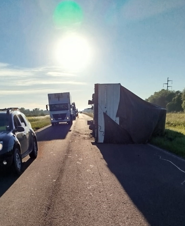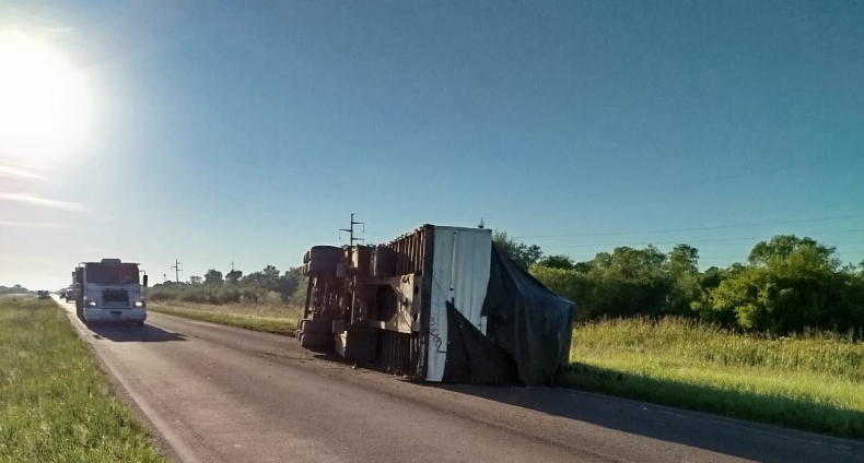 El hecho se registró alrededor de las 7, cuando por causas que se tratan de establecer un camión Scania modelo 340, tipo tractor, de color rojo, con dominio brasileño, terminó volcado tras morder la banquina y perder estabilidad. El acoplado quedó sobre la calzada, mientras que la unidad tractora finalizó sobre la banquina del carril ascendente.