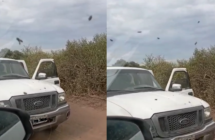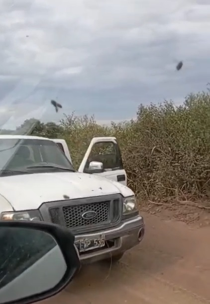Un grupo de hombres que circulaba en una camioneta Ford Ranger blanca fue sorprendido por un enjambre de abejas.