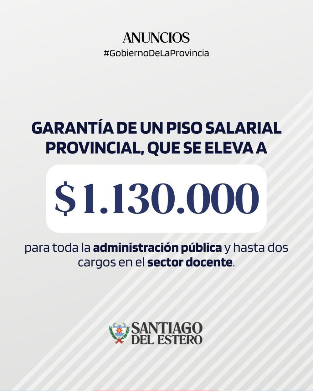 2.Garantía de un piso salarial provincial, que se eleva a $1.130.000, para toda la administración pública y hasta dos cargos en el sector docente.