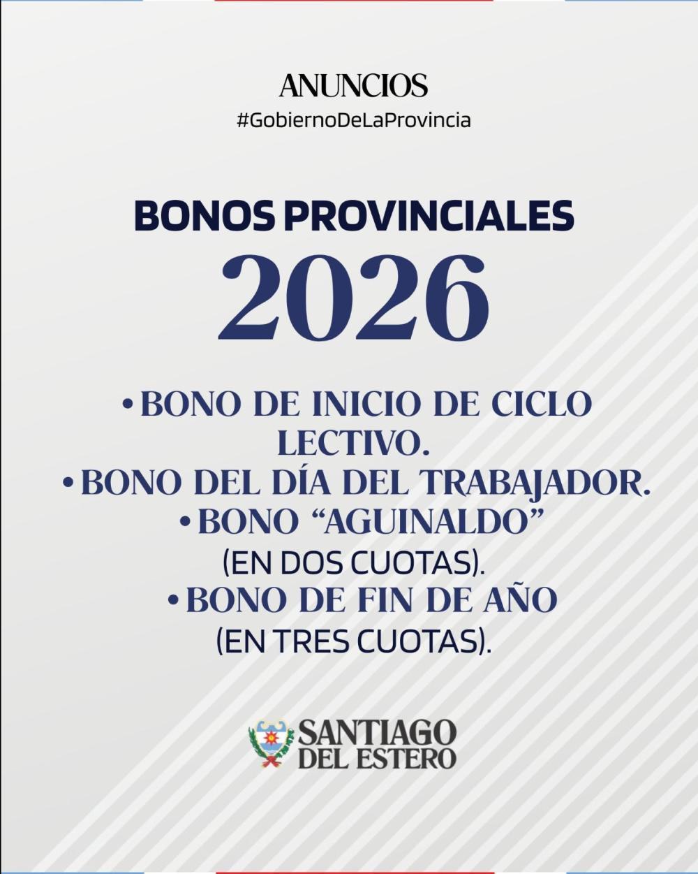3.Se acordó para el presente año el mismo cronograma de bonos provinciales que el 2025: